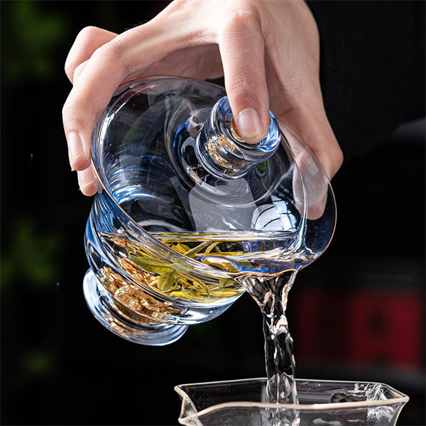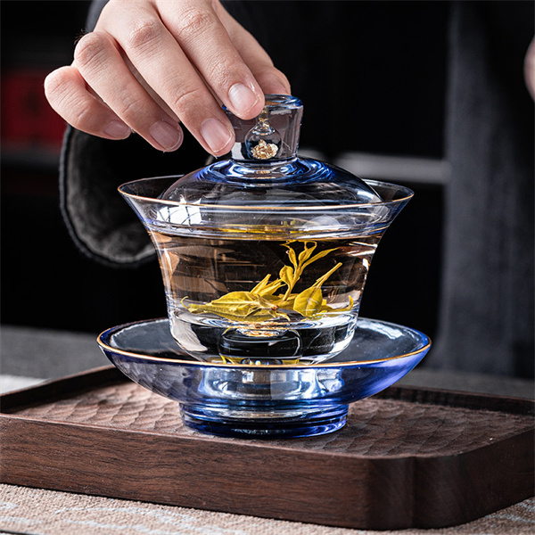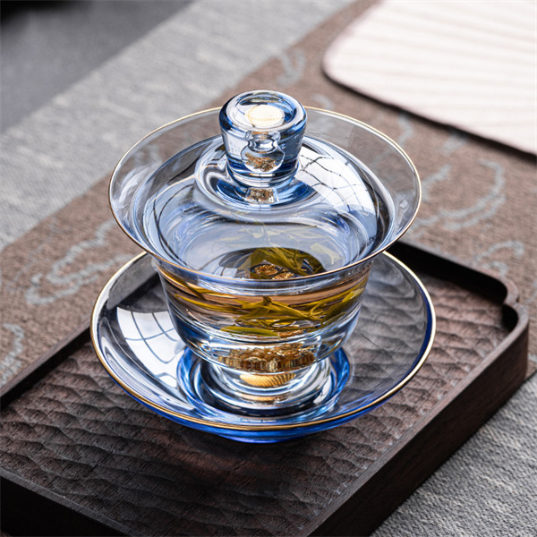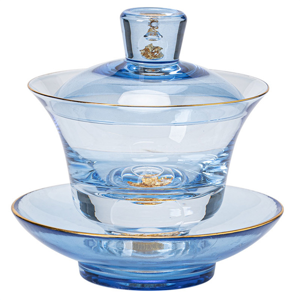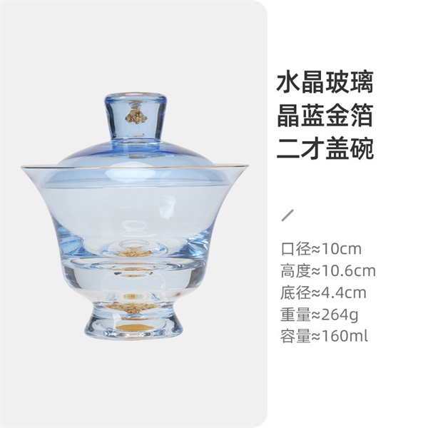 Садот со кристално сина златна фолија со фолија блеска силно во длабокото сафирно сино. Светлината и сенката го откриваат шарениот свет. Приказната за светлината е вредна во сонот, што ја отсликува убавината на чајниот банкет. Облогот на устата е лесно обоен со злато, а висечката златна фолија на дното на садот блеска. Исто така, има ефект на зголемување кога се гледа низ долната стакло. Копчето за покривање и долниот дел од садот одекнуваат едно со друго со блескави златни светки. Откако ќе ја истурите чајната супа, на прв поглед јасно се гледа кафеавата боја. Синџир на снабдување со платформа за е-трговија за домашни производи од стакло INTOWALK.