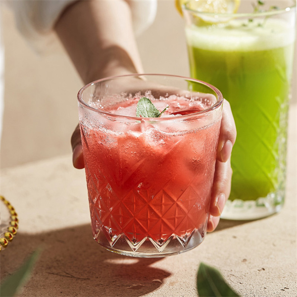 Изгравираните стаклени чаши за пијалоци во европски стил се како поток од чиста вода. Тие вешто ја користат изгравираната текстура. Прекршувањето на светлината е како скокање на музички ноти, што ве води да го истражите непознатиот свет на илјадници цвеќиња. Светлата кристална светлина и сенка се елегантни и не бараат премногу декорација. Тродимензионалната пресечена и врежана површина ја рефлектира светлината. Сјајот на светлината е бојата на кристалите, кои прекрасно се надополнуваат. Малку заоблената уста на чашата не ја повредува устата, е тркалезна и мазна и се чувствува удобно на допир. Задебеленото дно на чашата е убаво, не се лизга и не ја оштетува масата, што ја прави стабилна и безбедна за употреба. Синџир на снабдување со платформа за е-трговија за домашни производи од стакло INTOWALK