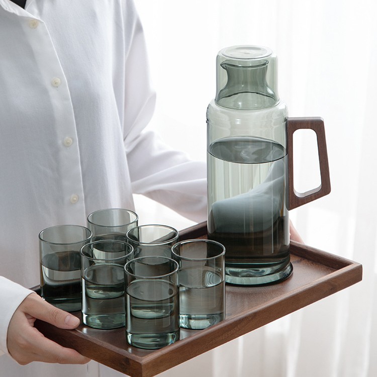 1. Во освежително лето доволно е едно тенџере. 1L дизајн со голем капацитет за задоволување на дневните потреби; Послужавник од ореово дрво, способен за носење предмети, разноврсен и разноврсен