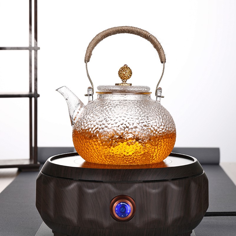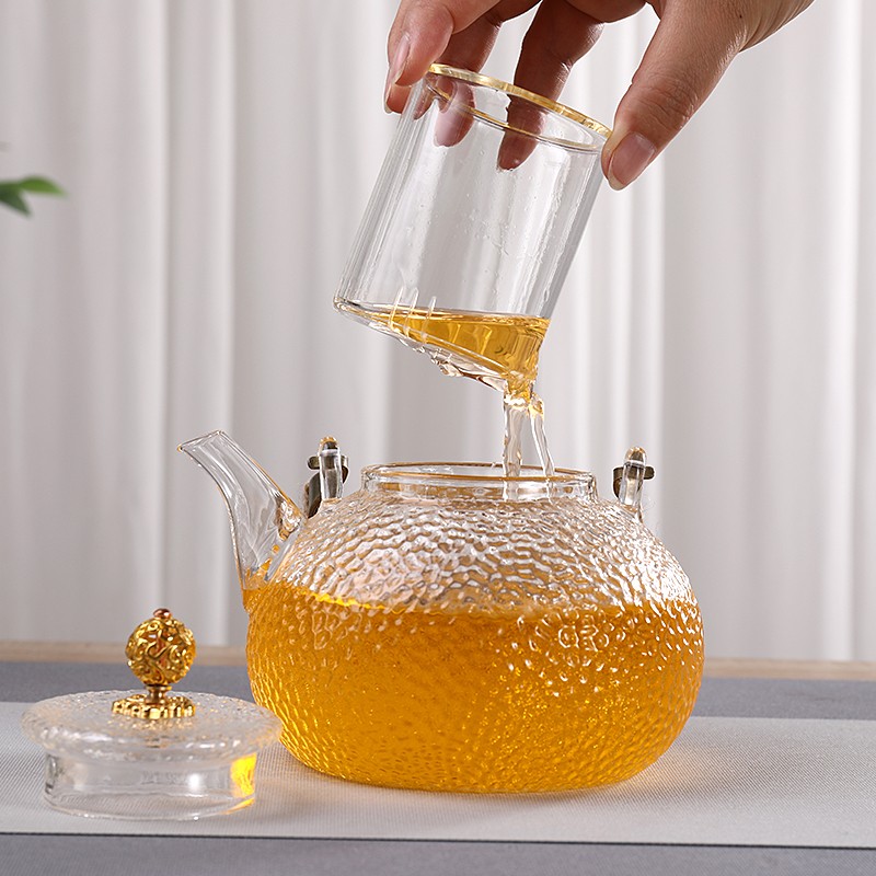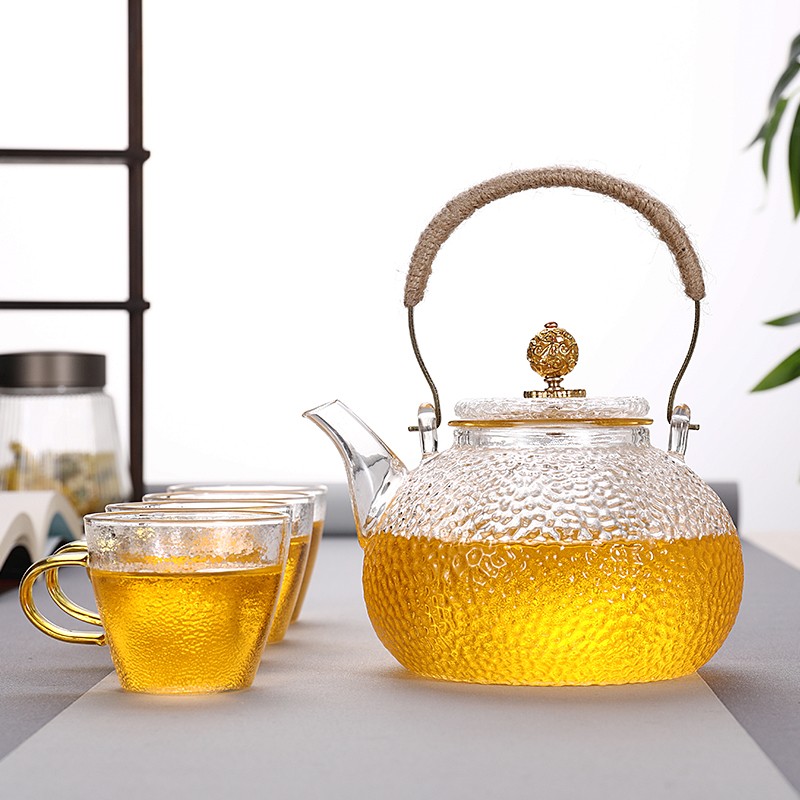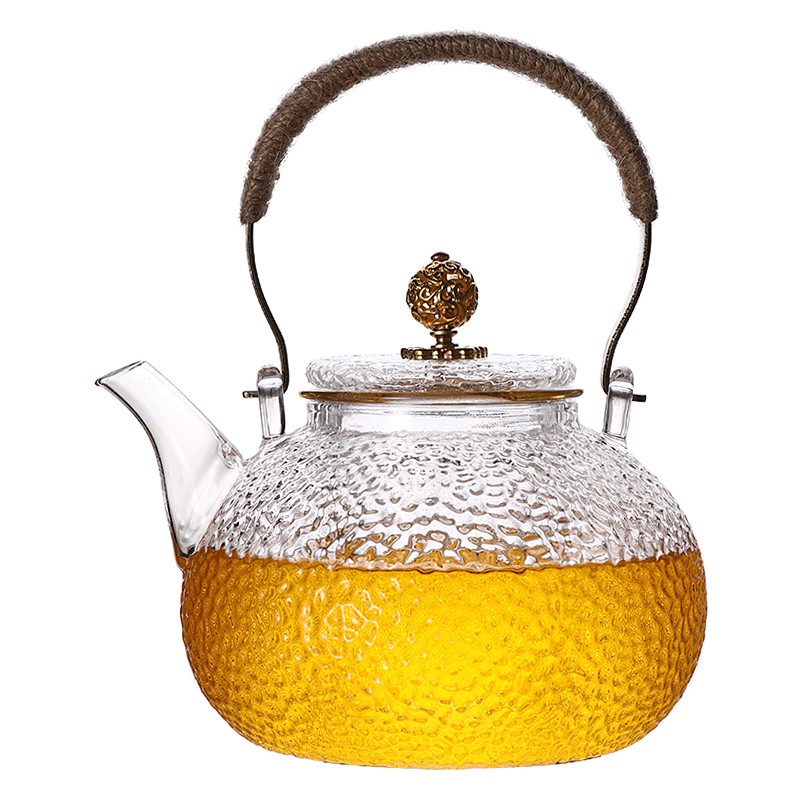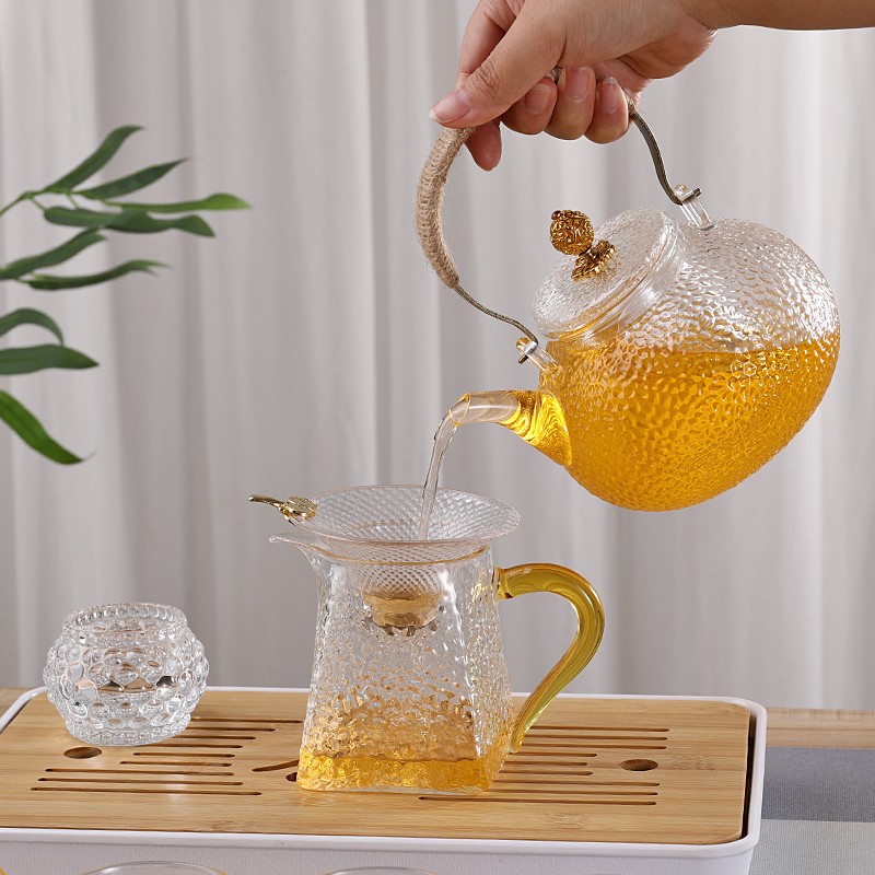Рачно изработен со висококвалитетна контрола, овој сет за чај од стакло со чекан има отстранлив стаклен инфузер што му помага на пијалокот целосно да циркулира додека се вари чајот. Капакот непречено се вклопува во стаклениот чајник кога е вметнат или изваден, совршен за удобно киснат лабав или цветен чај. Изливот има дизајн против капнување. Ова единечно тенџере со меурчиња усвојува рачно обоен рационализиран излив, кој ќе направи водата да тече многу непречено, намалувајќи ги вашите грижи за капе. Овој единечен чајник со инфузер се дува рачно од работниците и може да се стави на горната решетка на машината за миење садови или да се мие рачно. INTOWALK Производител на кинески изворно стакло