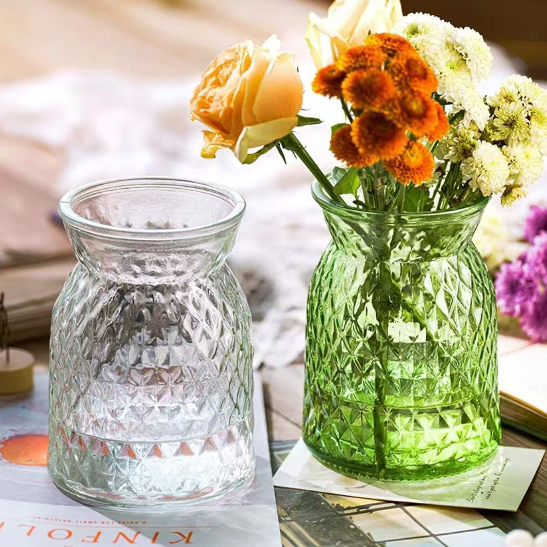 Име на производ: Луксузна проѕирна ретро врежана стаклена вазна
