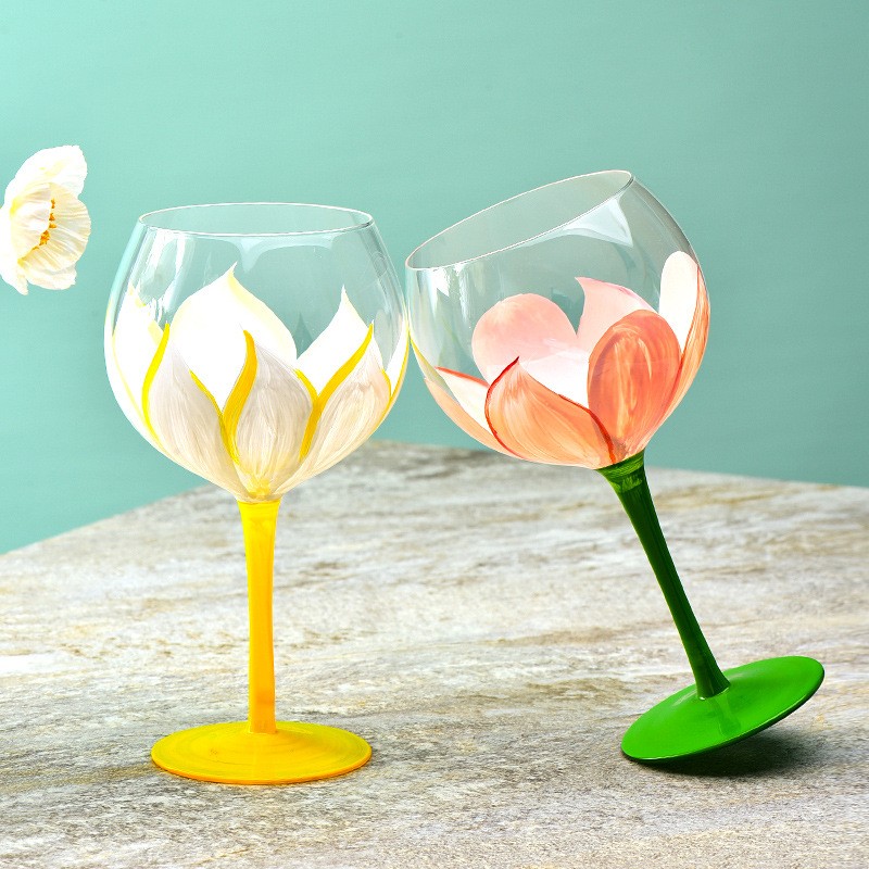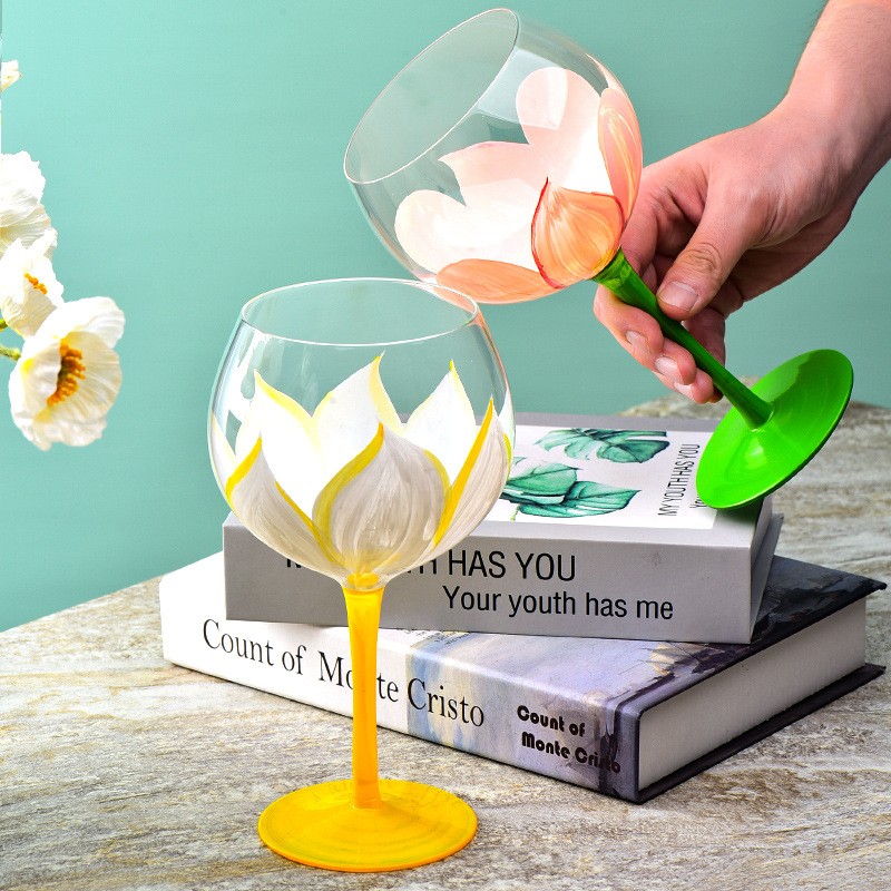Обоените чаши за вино од кристално стакло се внимателно рачно насликани од секој занаетчија, како пред вас да се замрзнат расцветаните цвеќиња. INTOWALK го користи виното како сватовник за полека да ужива во животот, овозможувајќи ви да се опуштите. Интересните рачно насликани дезени на чашките и модерните елементи што течат во природата се полни со живот