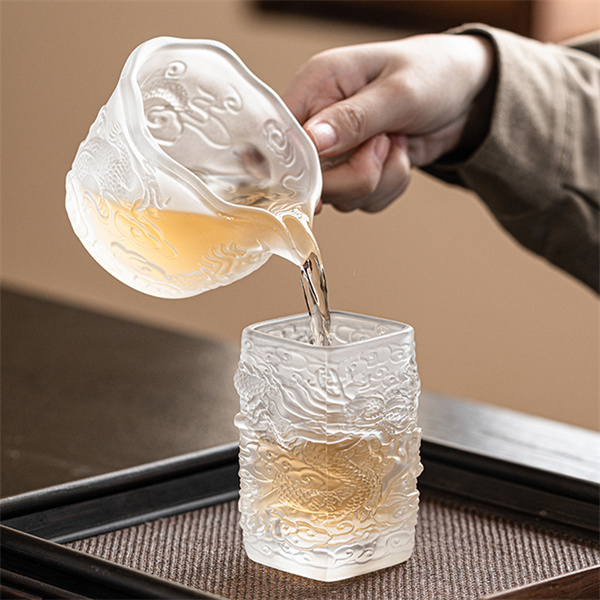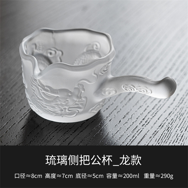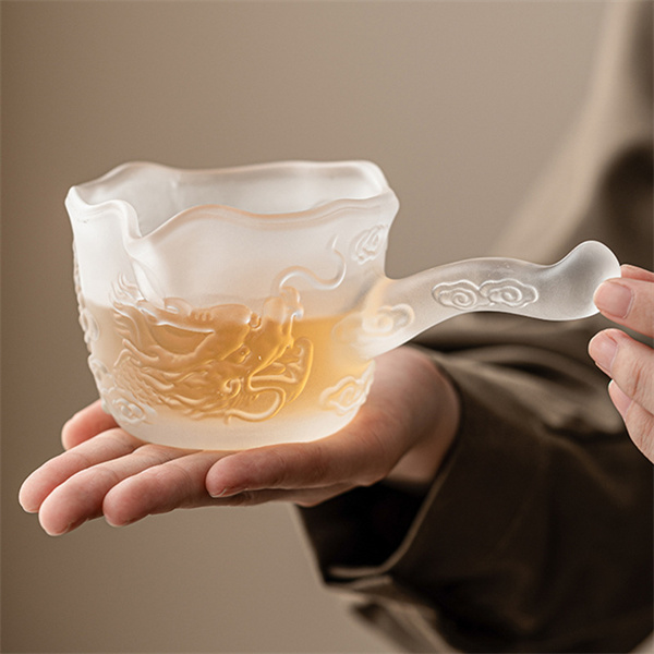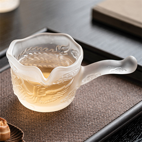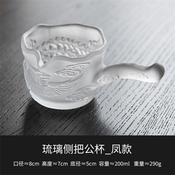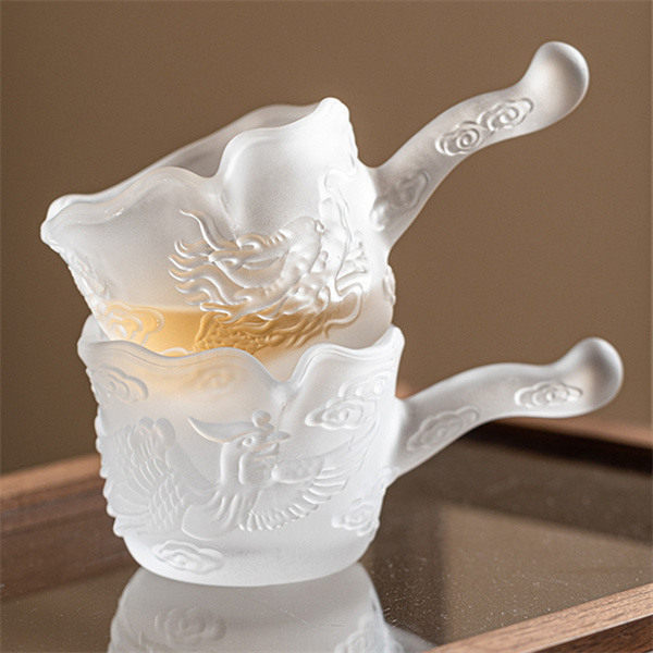Страничната рачка на саемската чашка од змеј и феникс ја носи убавината на чајот за секојдневна употреба, правејќи го чајот попрефинет. Изгледот и функцијата се нејзиниот темел, кристално јасен е неговиот стил, а правилната употреба ќе му даде живот. Тридимензионалните релјефи претставуваат добра репутација, змејовите, фениксите и високите облаци претставуваат благосостојба и благородна природа. Синџир на снабдување со платформа за е-трговија за домашни производи од стакло INTOWALK