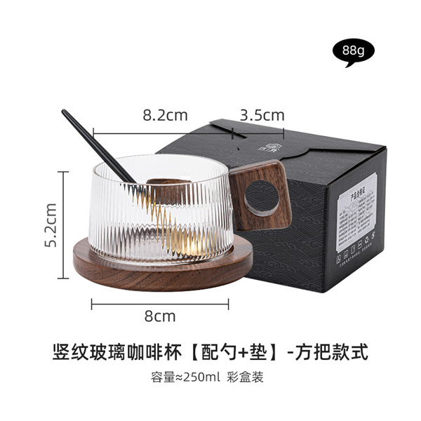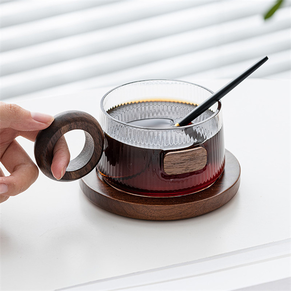 Стаклената шолја за кафе со вертикална шема носи своја убавина и е блиска до живот и додава чувство за дизајн. Утринскиот сок, попладневниот млечен чај, полн со виталност носат различни чувства, дизајнот што го загрева срцето отклучува фенси пијалоци, високиот боросиликат ви дава долгорочно дружење, две различни преференции, секогаш постои една што ќе ви отчукува срцето. Извонредната рачка од орев е удобна за држење, а целокупното релативно големо парче е внимателно исечено малку по малку од мајсторите за да биде удобно за држење и против изгореници. Се чувствува топло, ново и убаво. Синџир на снабдување со платформа за е-трговија за домашни производи од стакло INTOWALK